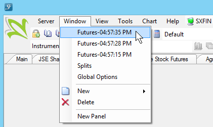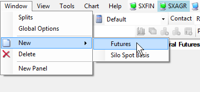 •Once Swordfish is open and connected to an exchange, click on Window > New > Futures from the menu at the top of Swordfish.