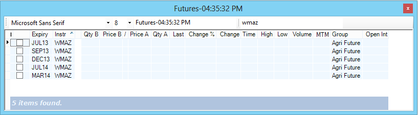 Although Swordfish has a number of 'standard' windows such as Deals, Orders, Positions, etc., in order to view instruments on a particular exchange you will need to setup your own Watchlist windows. This system has the advantages that you can choose only the instruments you wish to see in a particular window and you can also group instruments together into various different windows. Once you have created your Instrument watchlist windows, it is advisable to close Swordfish and then re-open and login. Swordfish saves the window configuration only when Swordfish is closed by the user. For subsequent uses, your window configuration will be retained.
