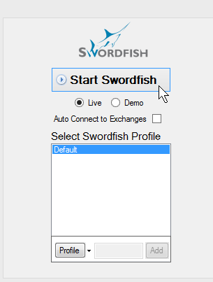 •Ensure that the Live radio button is selected and click on Start Swordfish.