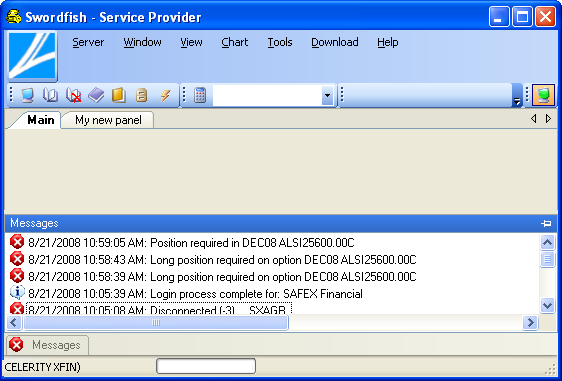 If you experience any difficulty while working with Swordfish, view the Messages tab for a possible source of the problem. Another source is the event log. Contact Swordfish support team at 087 150 5443 if you cannot resolve the problem yourself.