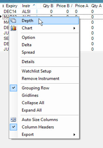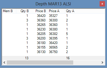 If there are current bids and/or offers for a particular instrument, view the nine best bids and offers in a Depth window.