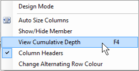 •Select the instrument for which depth is to be shown by right-clicking the mouse on the instrument - a pop-up menu appears. Select Depth: