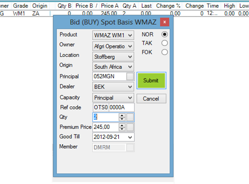 2.Bear in mind when submitting bids that you may be subject to restrictions in terms of quantity and or price, such restrictions placed by either the exchange or an intermediary such as a broker.