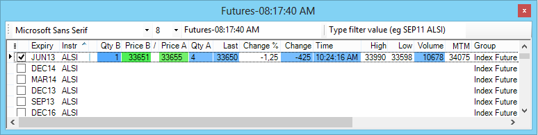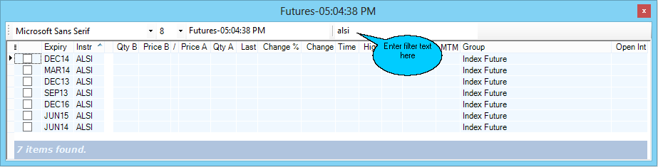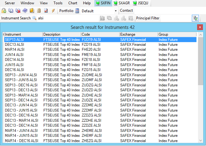 •Enter the instrument name or code in the Instrument Code Filter, e.g alsi: