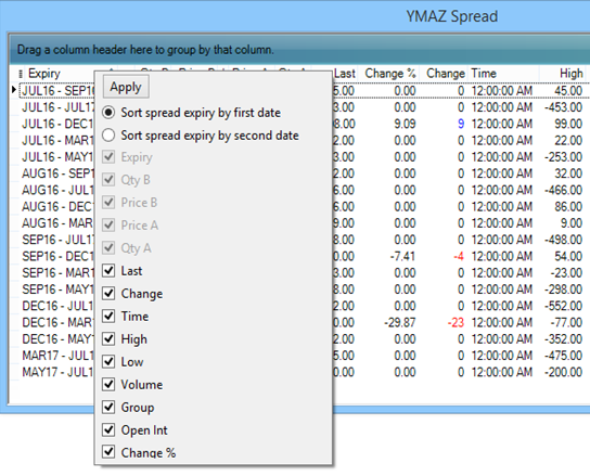 •Sorting of Spread contracts on a watchlist can be configured to sort on first date or second date:
