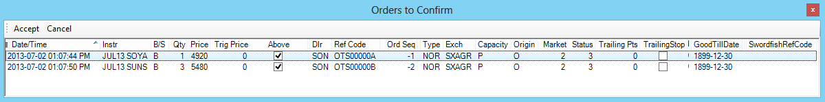 Unconfirmed Orders are used when a person in a supervisory role (that has Broker or Dealer Swordfish permissions) needs to verify orders placed by a user.