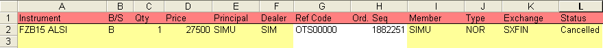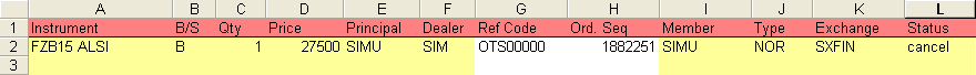 •Any active or partially traded order can be cancelled by simply entering the text cancel in the Status column of the order: