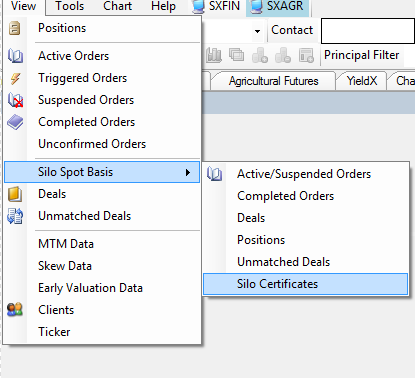 Method 1.Ensure that you are logged in to the Safex Agricultural exchange, ensure 2.Select View > Silo Spot Basis > Silo Certificates 3.See the Silo Certificates window appear. 4.Click the Add menu option as shown in the image below.