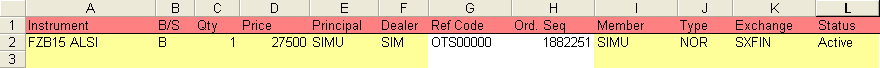 •The standard configuration of sfExcel is to allow only one bid or one offer on a specific instrument at a time. Thus for example if the user has an active bid on DEC11 ALSI and submits an automated bid on DEC11 ALSI from sfExcel, the previous active bid will be cancelled, before the new bid is submitted.