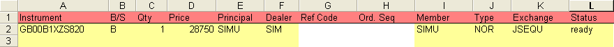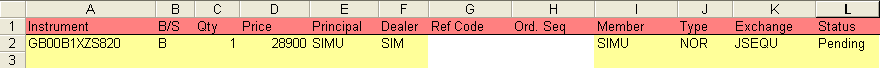 3.Order B: Bid on instrument X is input into sfExcel immediately after Order A.