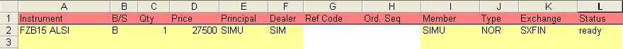 •If the status is set to ready and sfExcel has Allow order submission… enabled, the order will be recognized and submitted to the exchange.