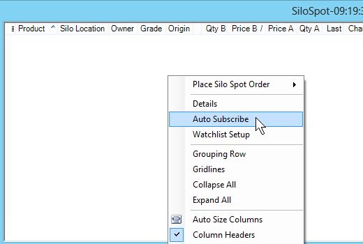 A Silo Spot Basis watchlist can be created by using the Silo Auto Subscribe menu option.
