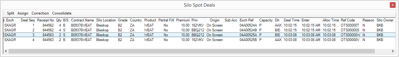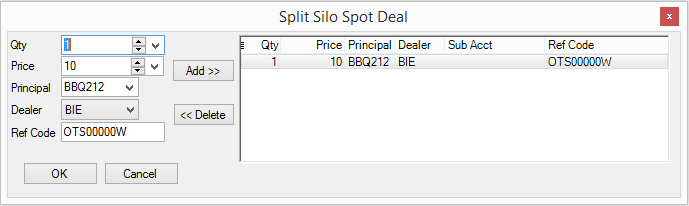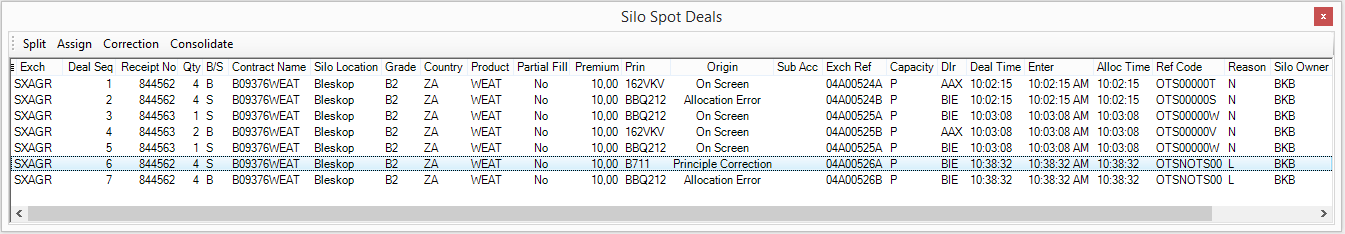 Deals which are similar, that is if they are of the same type (buy or sell), have the same principal and dealer codes and are of the same instrument, can be split into more than one deal.