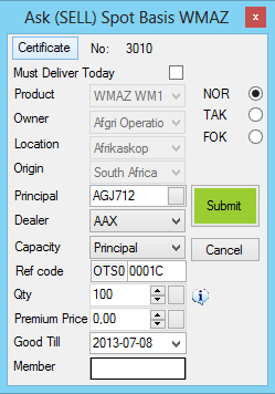 4.See the Ask (SELL) window (below) for the Silo Spot Basis.