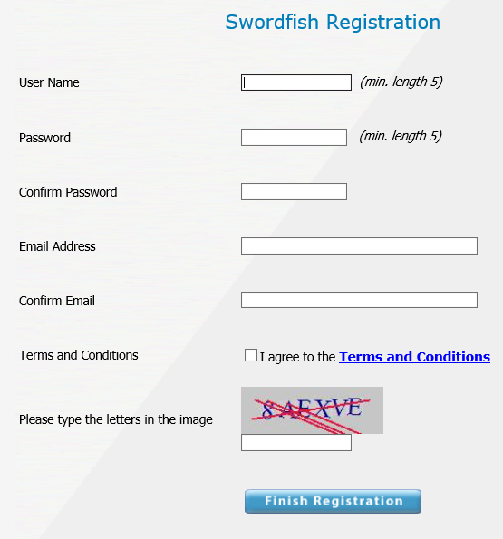 Registering for a Swordfish Login