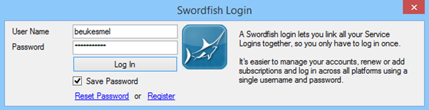 A Swordfish login allows you to link all your service logins together, so you only have to login once. This login can be used to login across all platforms, mobile, web and desktop. This allows easier management of your accounts by logging in across all platforms using a single username and password.