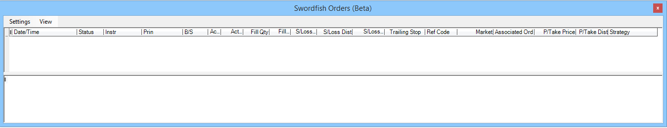 Swordfish Orders window displays (Swordfish) active orders, completed orders , triggered orders and deals in one window for easy access.